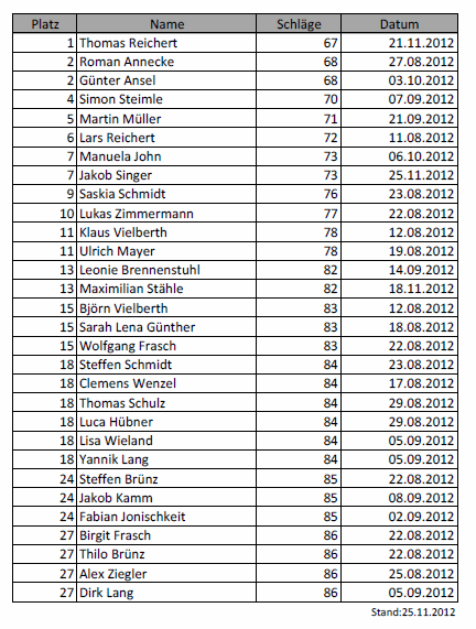 Da wir keine Kontrolle der abgegebenen Scorecards durchführen können, bitten wir alle Spieler um Fair Play.