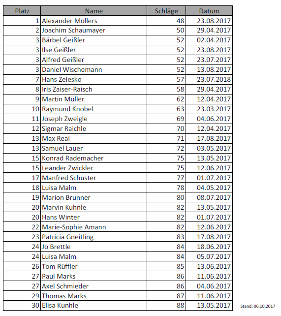 Da wir keine Kontrolle der abgegebenen Scorecards durchführen können, bitten wir alle Spieler um Fair Play.