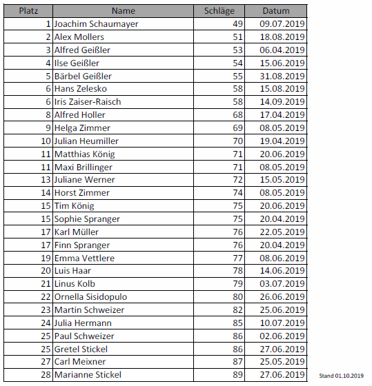 Da wir keine Kontrolle der abgegebenen Scorecards durchführen können, bitten wir alle Spieler um Fair Play.
